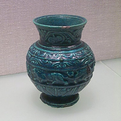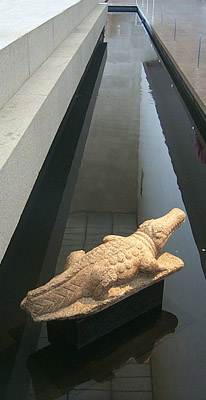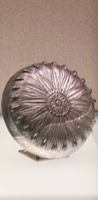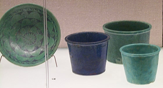 | Down the hallway to the right (above) is a suite of rooms filled with smaller artifacts in cases (below) | ||