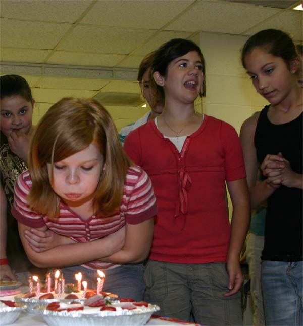 Kathrine blowing out the candles